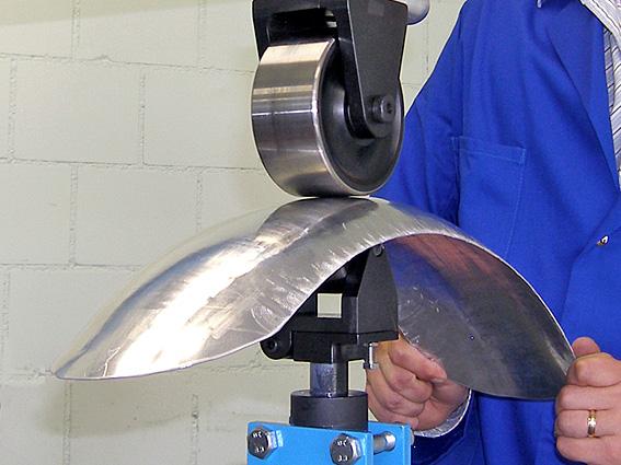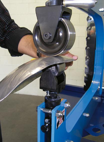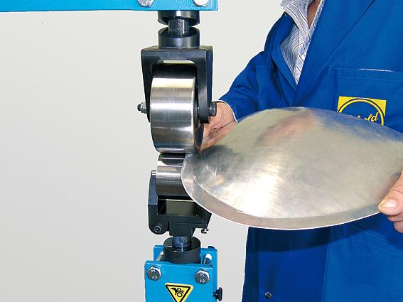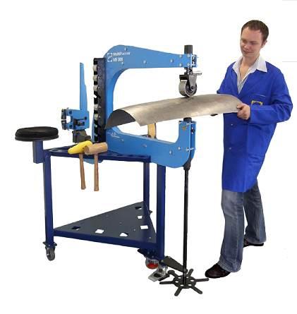 je mobilní víceúčelové zařízení k roztahování plechu válcováním s integrovaným ručním tvářečem pro tváření za studena na plechy a profily včetně děrování a vystřihování.