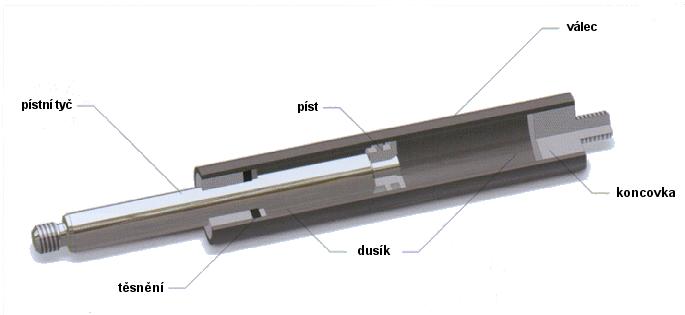 - olejová komůrka /4/ - snižuji tření pístní tyče a dovoluje zabudovat vzpěru v jakékoliv poloze